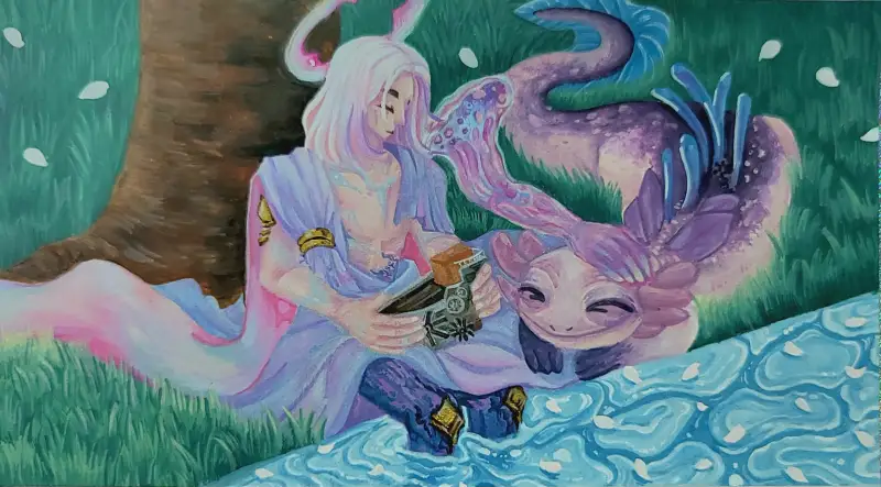 선명도와 채도를 살짝 조정하여 보정한 완성작 입니다. 새로운 재료를 활용해 기간 내에 퀄리티 있는 그림을 완성하는 것이 많이 힘들었지만, 저 자신과의 싸움에서 이겨내어 좋은 작품을 완성시켜서 후련한 기분과 수채 과슈라는 새로운 재료를 어떻게 다루는지 공부도 되었던 시간이었던 것 같습니다. 다음 주차에도 좋은 작품들을 그려오겠습니다. 긴 글 과 부족한 그림 항상 예쁘게 봐주셔서 감사합니다!🙇‍♂️🙇‍♀️🙇