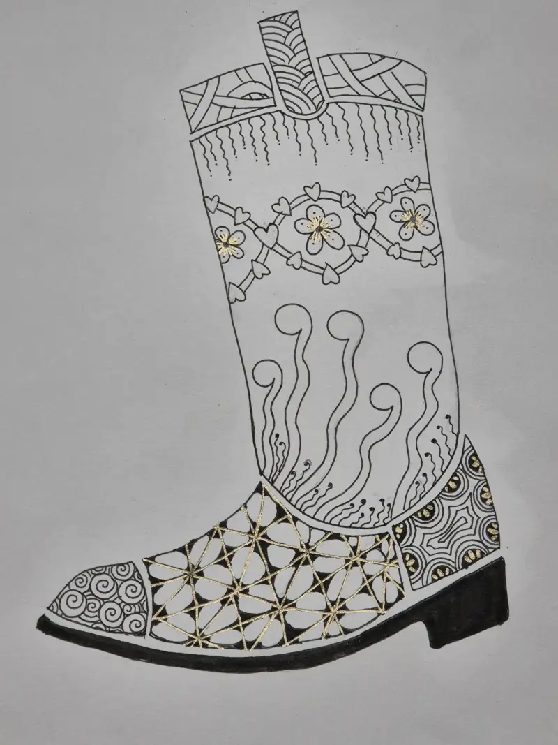 그리고 부츠에 젠탱글 패턴들을 가득 그려보았어요