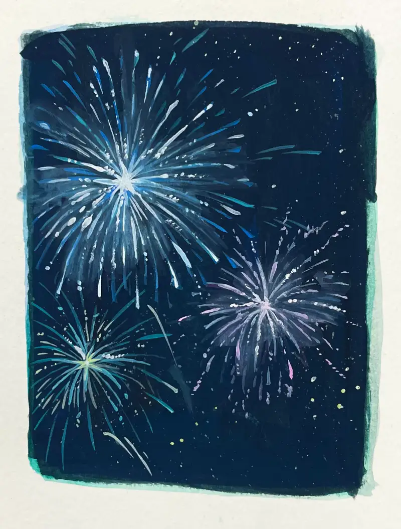 길가다 우연히 발견했던 불꽃이 환하게 피어나던 밤하늘을 그렸습니다. 🎆