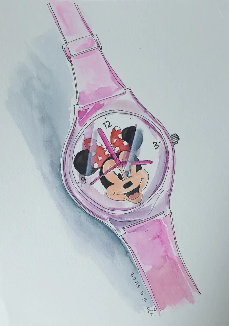 시계 안쪽 부속이 다 비쳐 보였고, 핑크빛 투명했던 색감은 또렸히 기억나네요.