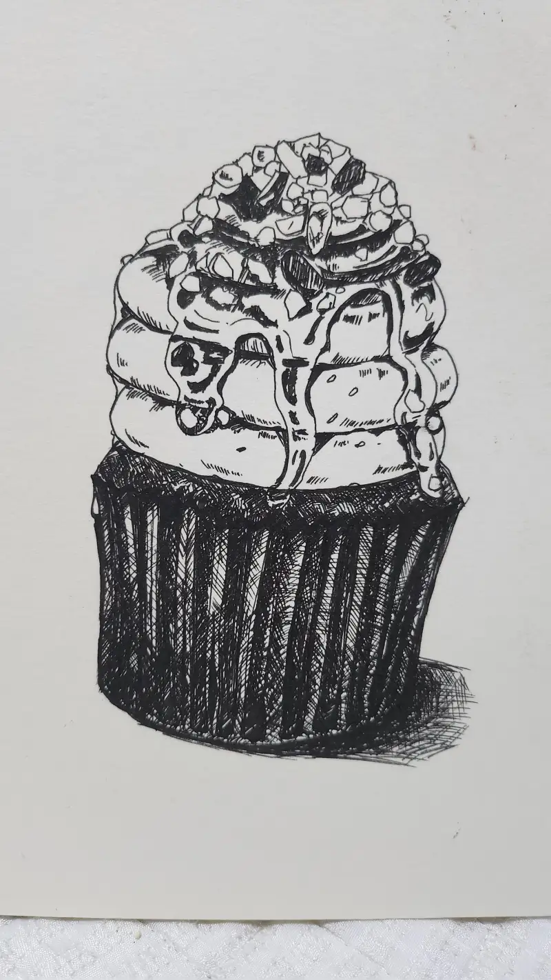 첫번째 컵케이크는 만년필로 그렸어요.