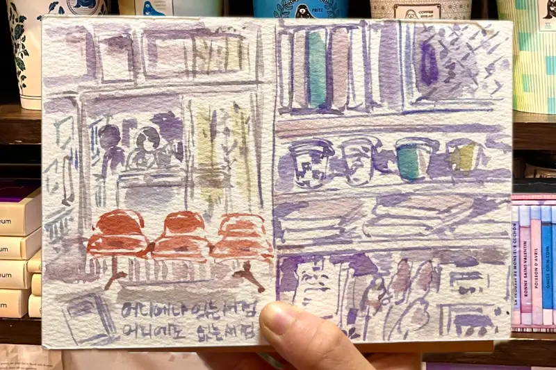 드로잉 2주차_스케치없이 그리기 도전?!어서어서 서점