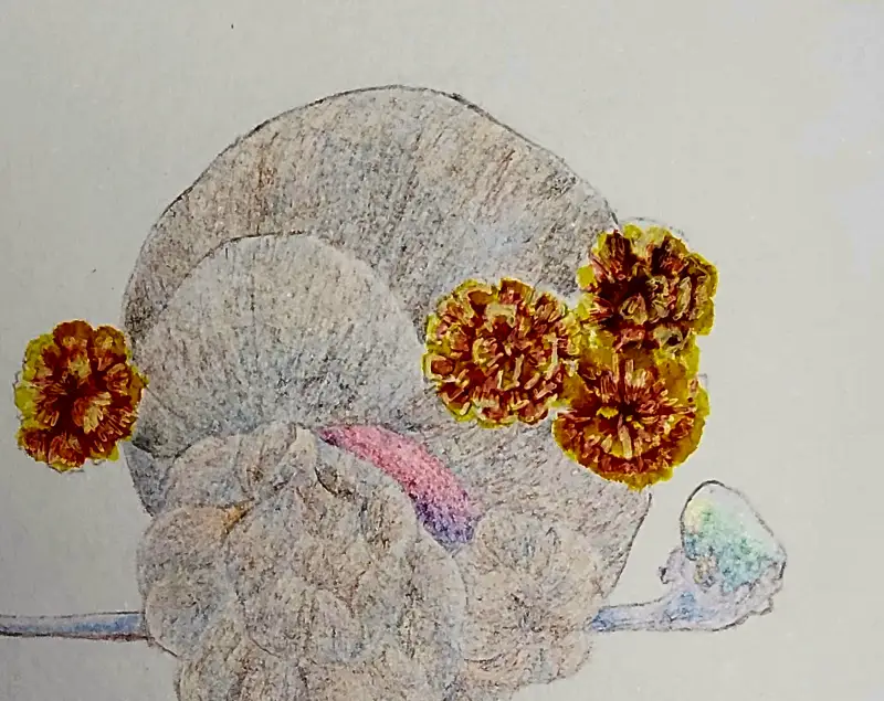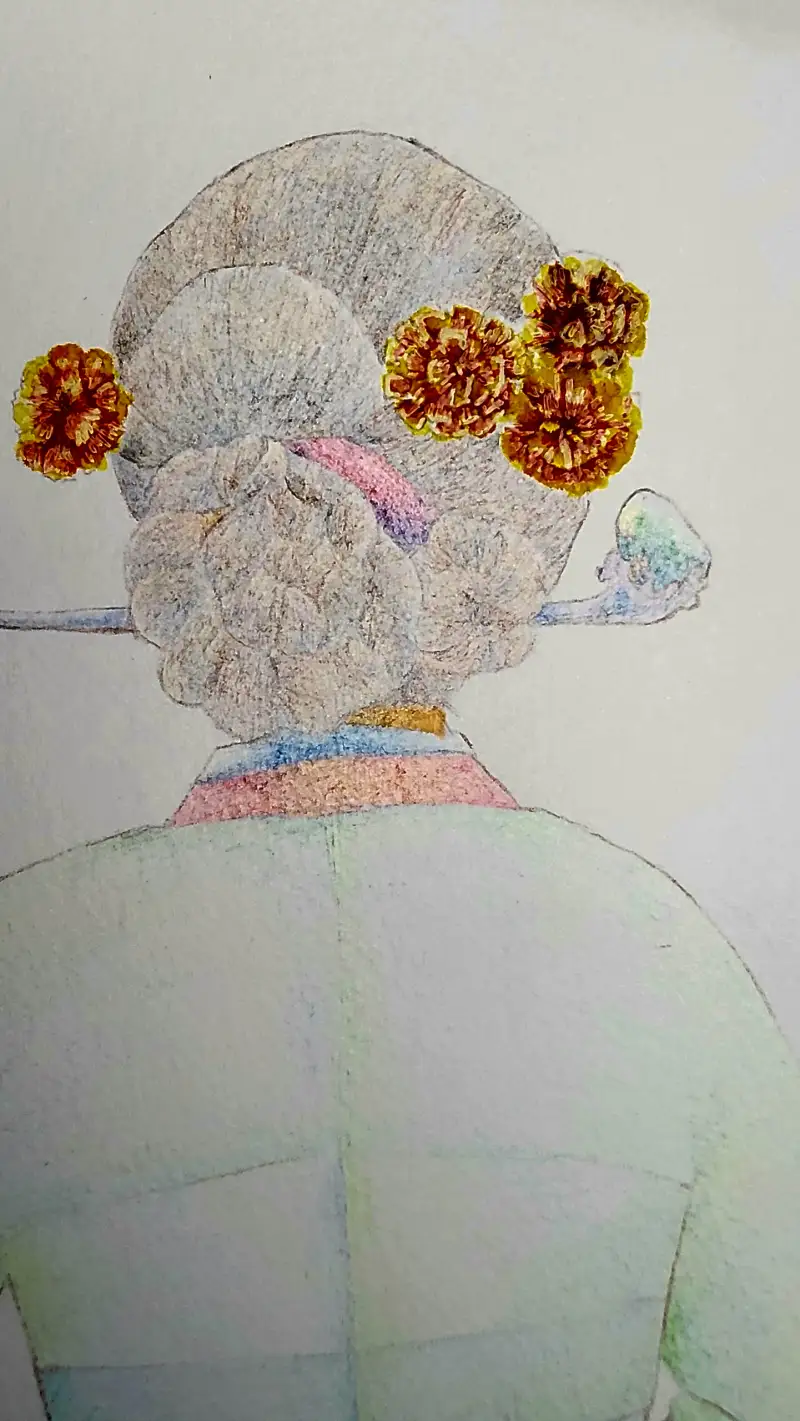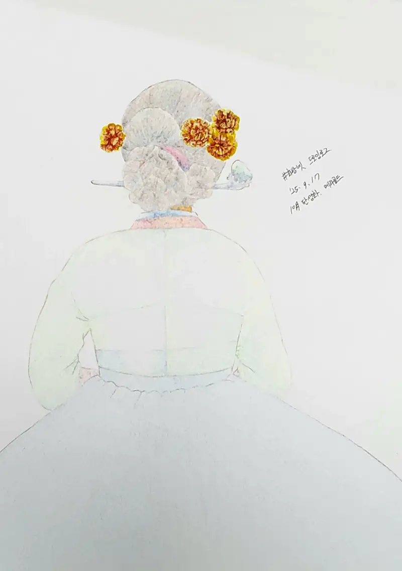 메리골드를 꽂은 여인의 뒷모습