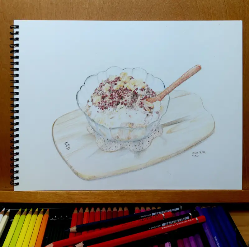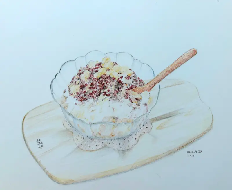 그래도 달콤시원한 팥빙수 맛있게 그려봅니다.