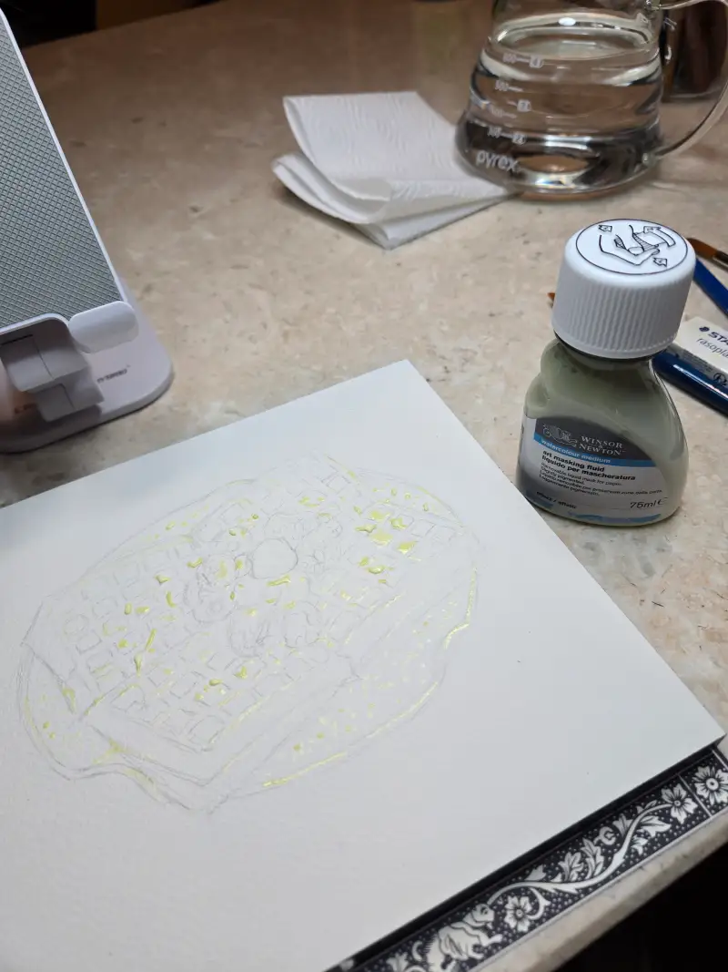 미젤로 고체물감으로 그려본 쑥인절미와플