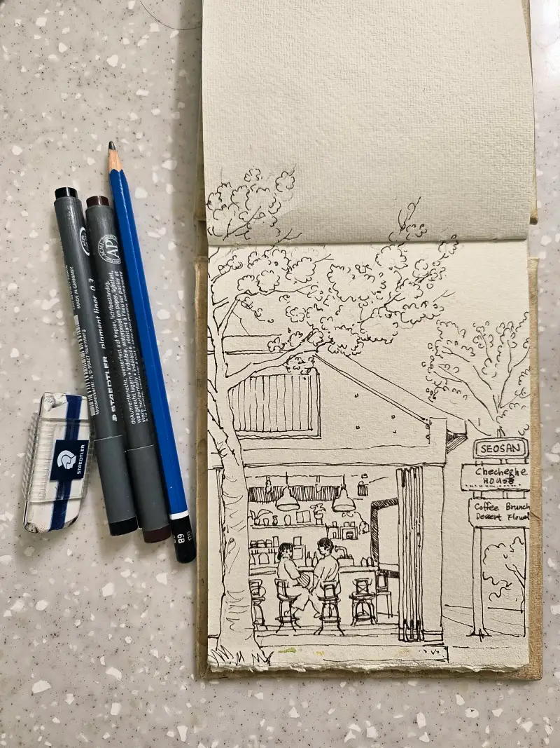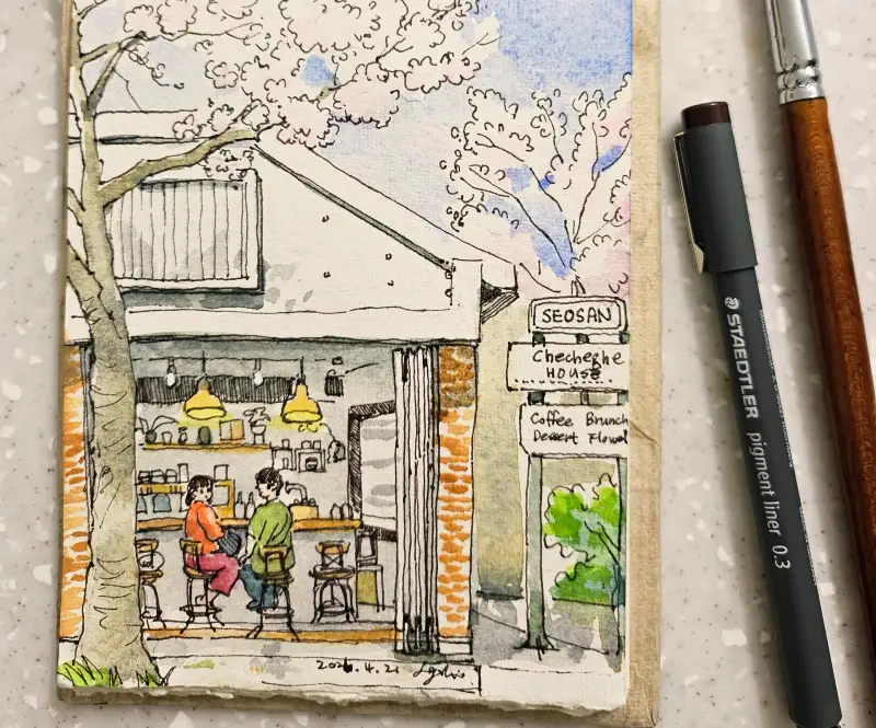 어반스케치,스테들러피그먼트라이너,서산카페,체체게카페
