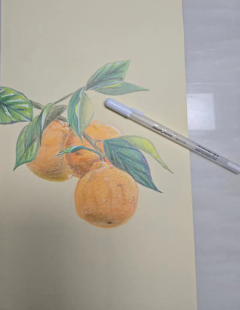 색연필로만 끝내려다보니 포인트가 없는것 같아서