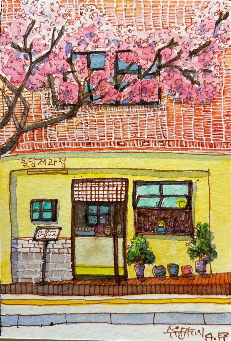 작은 카페에 화사한 벚꽃이 얹어져 두근거리는 마음으로 보게된다.