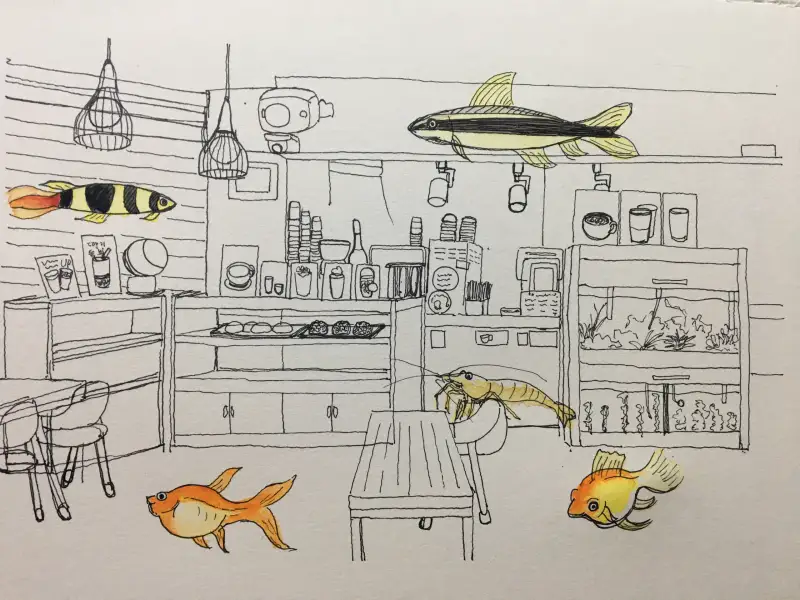 이름 모를 물고기가 많은 어느 까페.
