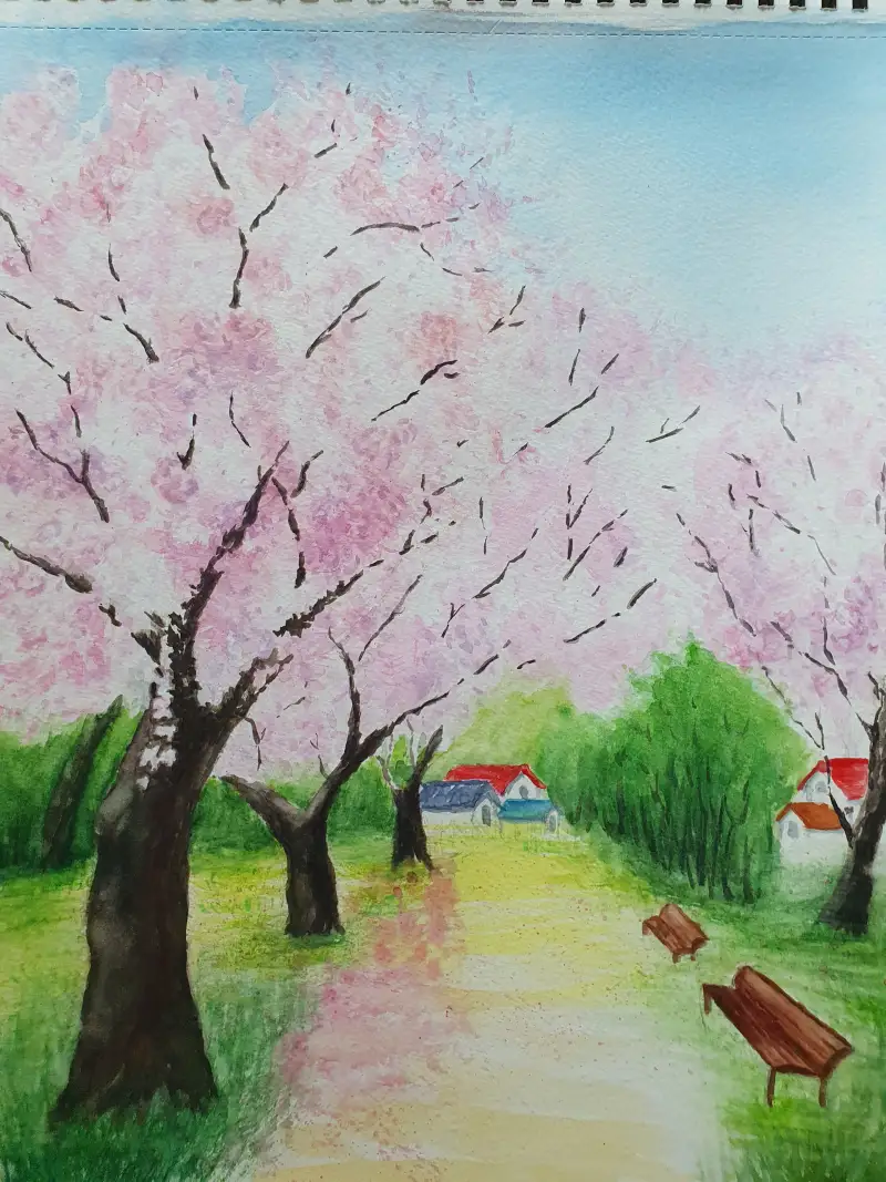 아름다운 벚꽃을 그리며 꽃을 더 관찰하며 아름다움을 느낀 봄입니다. 꽃이 어떻게 생겼는지 나무는 어떻게 생겼는지 가만히 들여다 보는 습관이 생겨 좋습니다