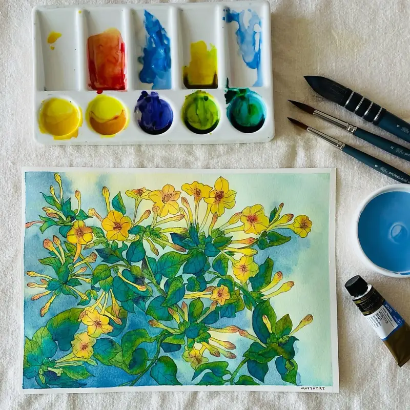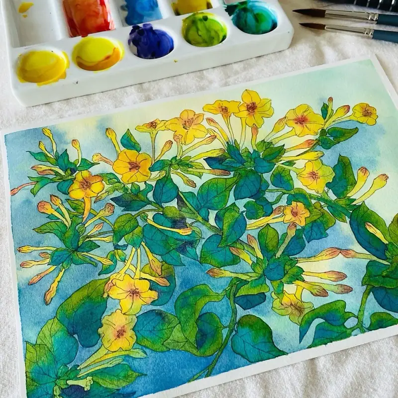 새벽우주 그림일기/노랑 분꽃 그리기(미젤로 물감,윈저앤뉴튼 신서틱세이블 수채화붓,산더스 워터포드 세목,화방넷 드로잉로그)https://m.blog.naver.com/4getup/223571991695