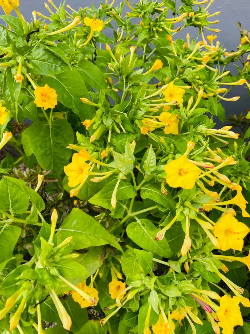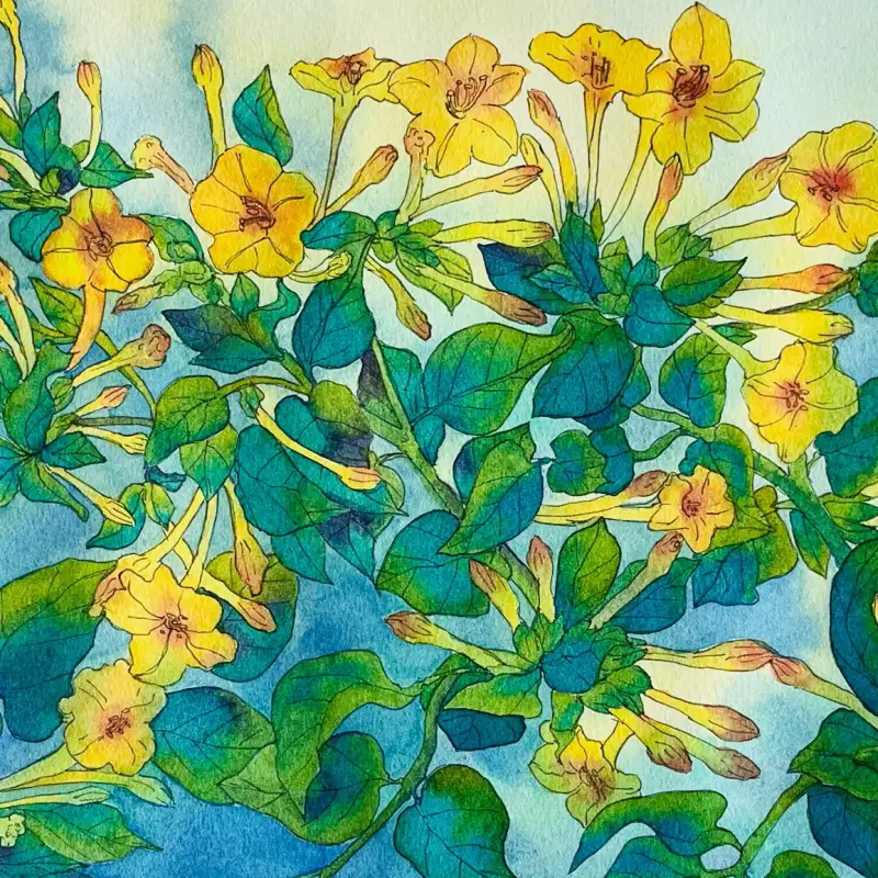 아파트 화단에 피어있는 노랑 분꽃 그리기