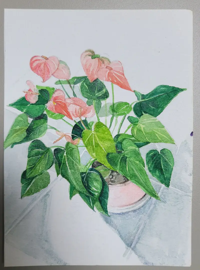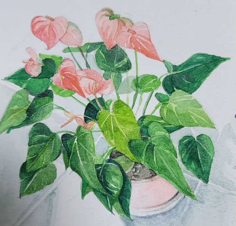 여름에만 볼수 있는 꽃은 아니고 사계절 내내 볼수 있어요.. 붉은 꽃이 여름이랑 잘 어울려서 안수리움을 그려봤습니다.