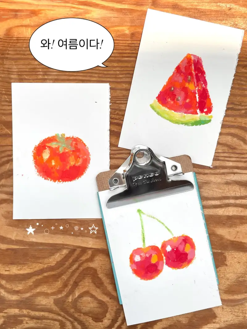 싱그러운 여름의 빨간맛들을 모아 그려보았습니다! 멋쟁이 토마토와 여름방학하면 생각나는 시원한 수박, 탱글탱글한 체리까지 빨간맛 총집합! 🍅🍉🍒♥️