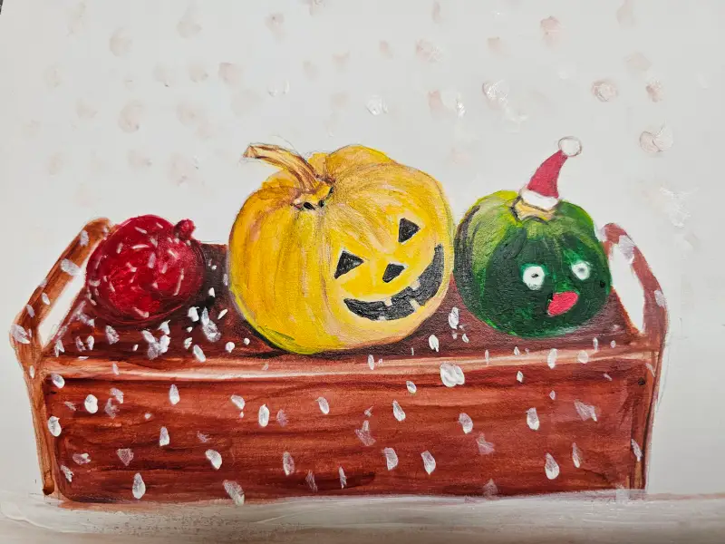 할로윈 호박에 산타모자를~  화이트 크리스마스 느낌을 만들어봤어요~