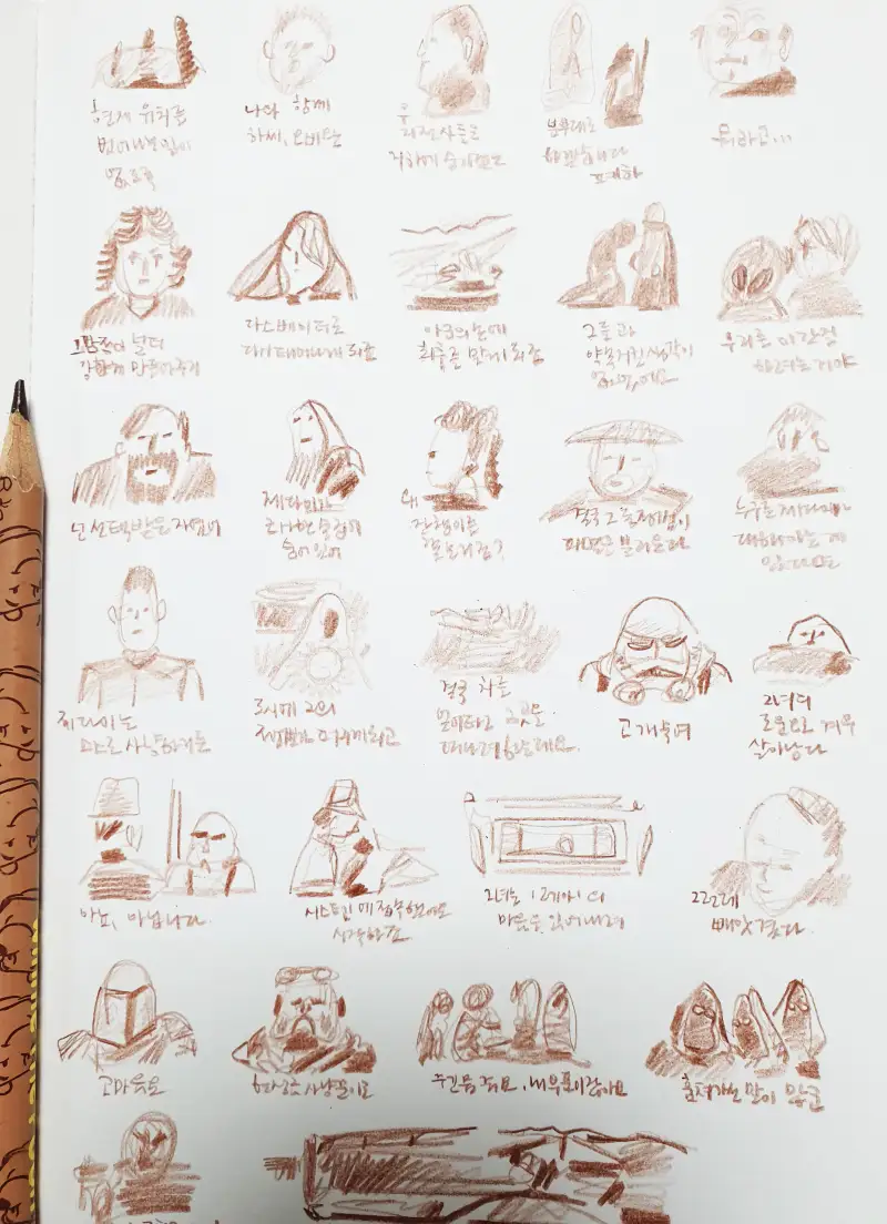 장면장면 색연필로 옮겨보니 재미있네요. 전혀 새로운 영화 한편이 뚝딱. ㅋㅋㅋ