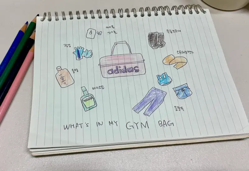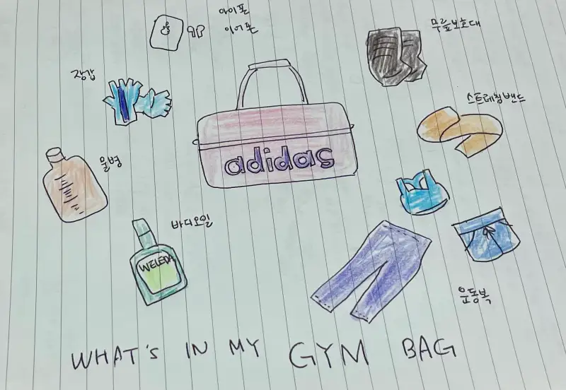 헬스장 갈 때 들고가는 가방에 들은 물건들을