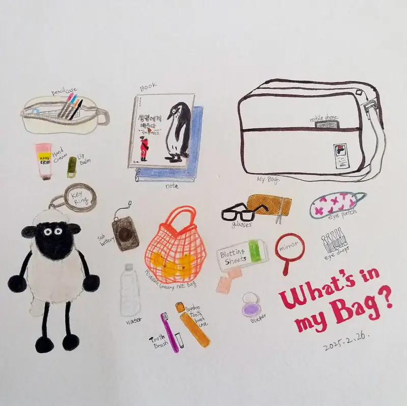 가방 안에 넣을 수 있는 물건들을 총동원함. ㅋㅋ 평소에 다 가지고 다니진 않지만 모아봤어요.