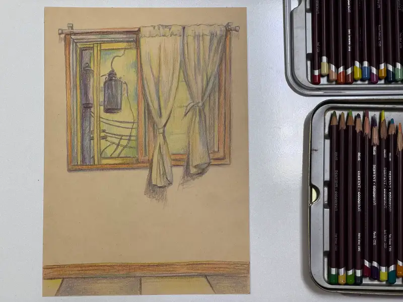 오늘은 흐린 날이라 햇빛을 잘 보지 않았지만 가장 좋아하는 공간에서 건식재료로 드로잉로그 그려보았습니다~
