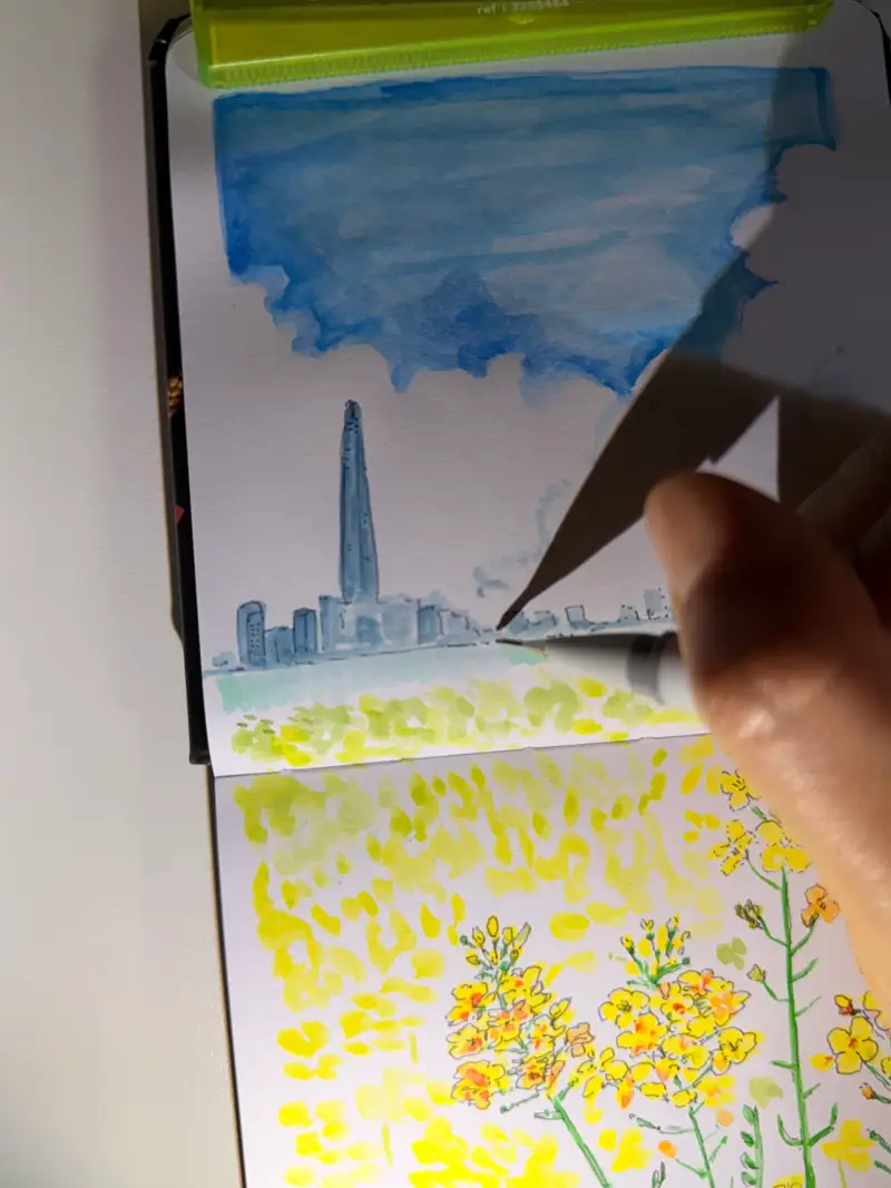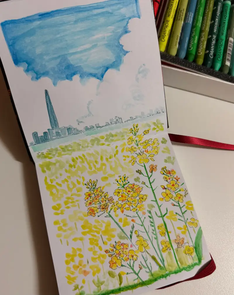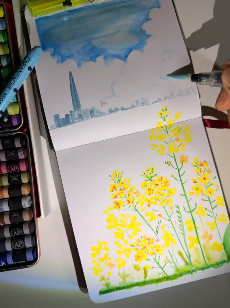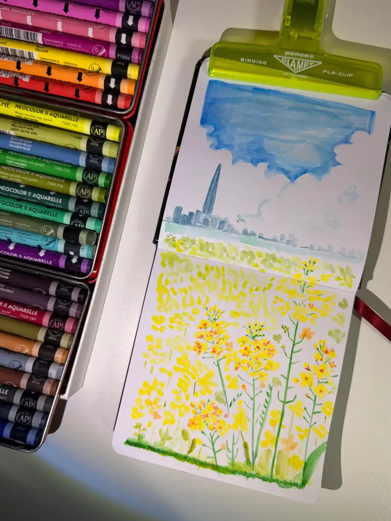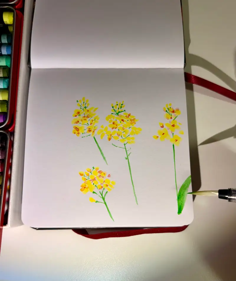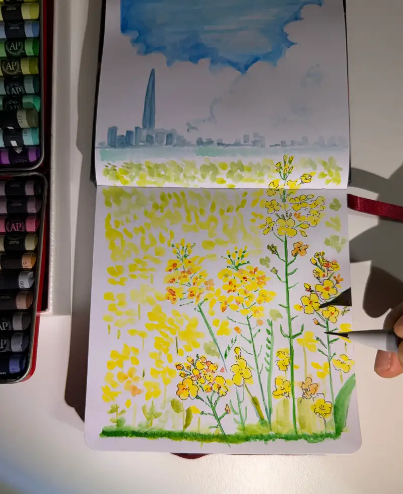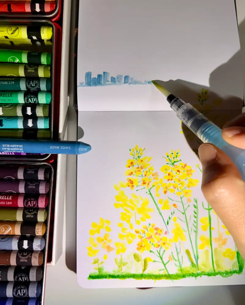 유채꽃 노란 꽃망울을 노랑으로 몽글 몽글 그려주고 ,