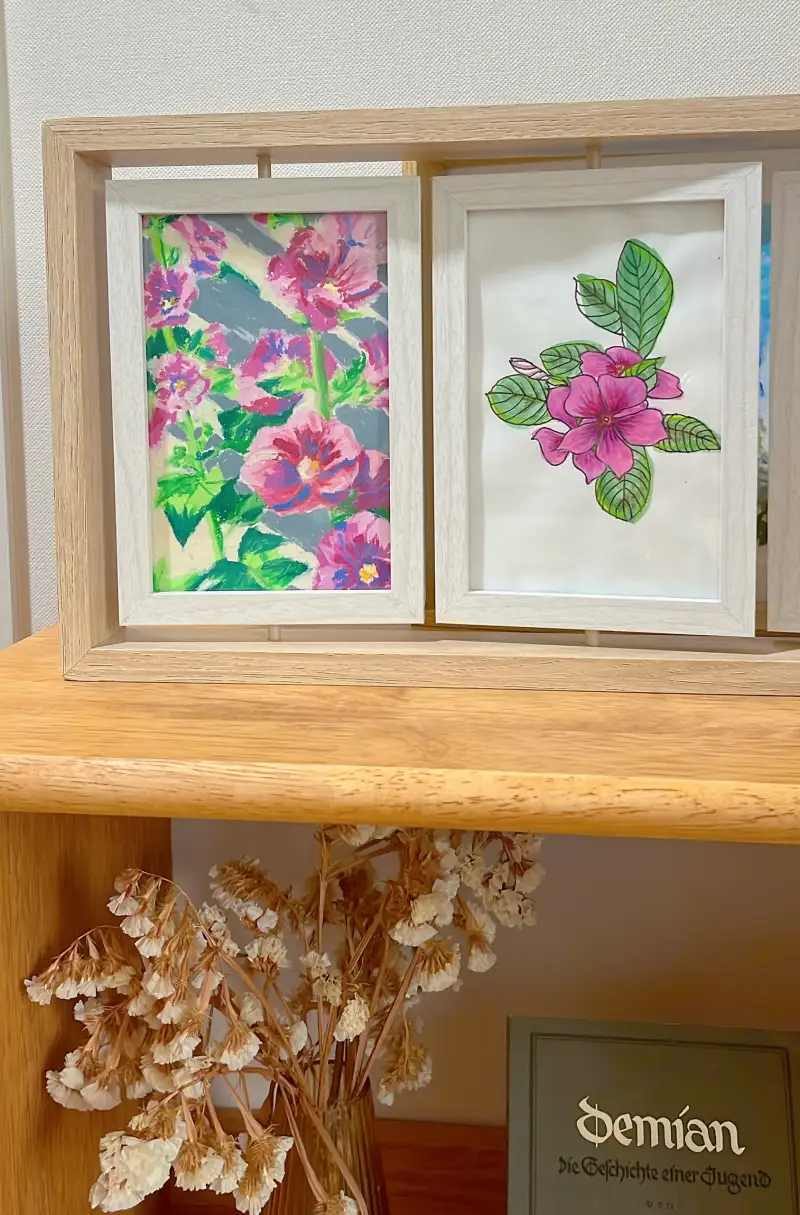 액자에 접시꽃이랑 같이 넣으니 그래도 좀 괜찮네요.
