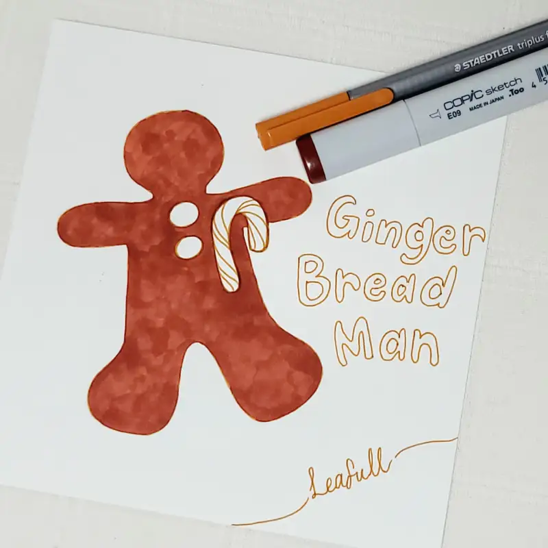 코픽 스케치마카 E09 컬러로 진저브레드맨을 칠했어요