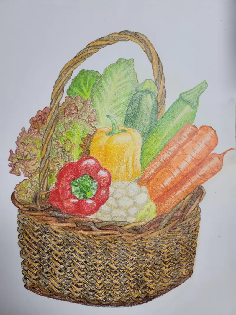 제가 즐겨 먹는 채소로 가득찬 바구니를 그렸어요.
