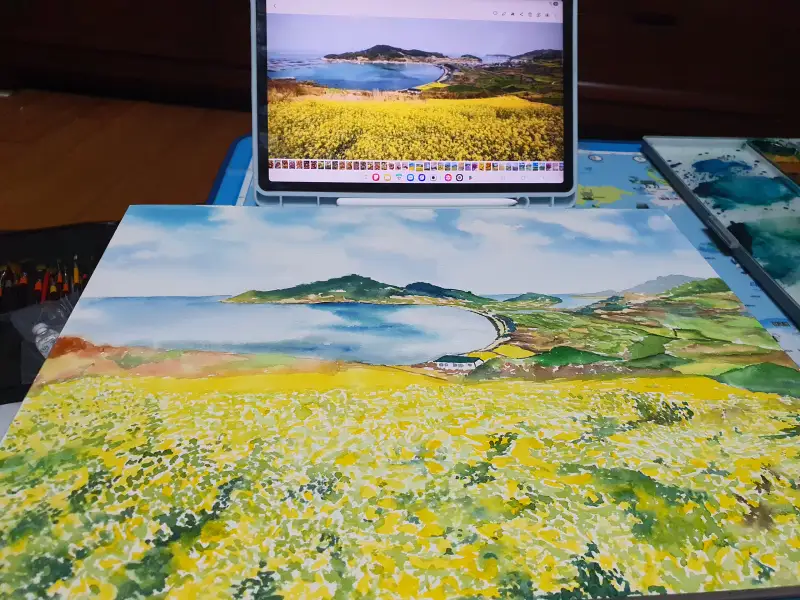 봄꽃주제 핀터레스트 에서 검색하다가 청산도 유채꽃 풍경 그려봅니다