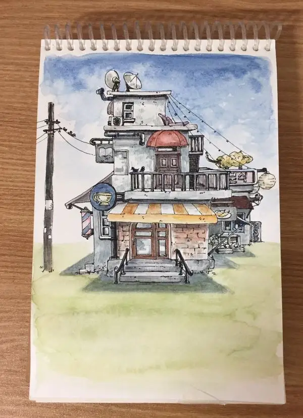 애착이 가는 장소도 딱히 없고 카페도 가지 않아서 그냥 상상하며 그려봤습니다.