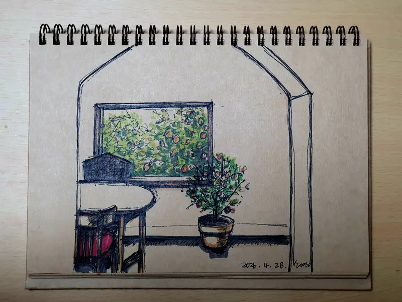 카페 풍경을 그려보았어요