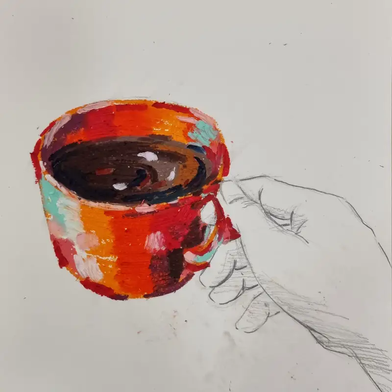 오일파스텔로 작업한 컵입니다. 지역마다 날씨 차이는 있겠지만 여긴 흐리멍텅하네요. 따뜻한 차 한잔으로 에너지 충전하고 오후업무 들어갑니다.