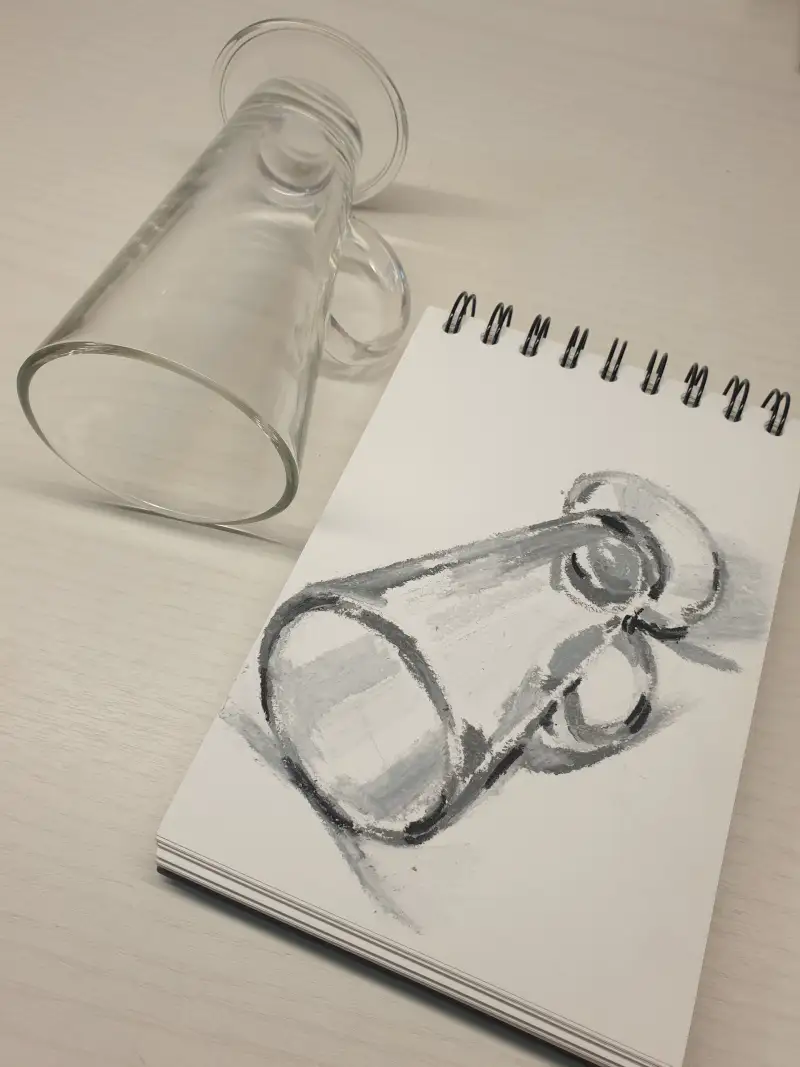 매일 쓰는 유리컵을 크레파스로 그려봤어요
