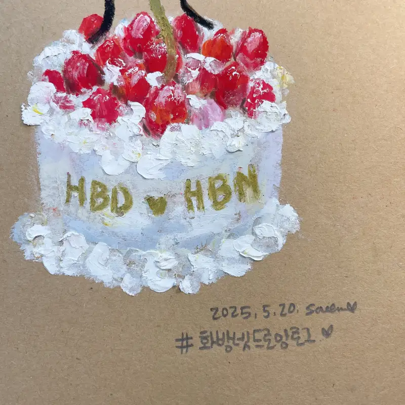 지난 동생 생일에 딸기 생크림 케이크를 만들어줬었어요. 그 케이크를 모티브로 화방넷 생일 케이크를 그려 봤습니다.🎂