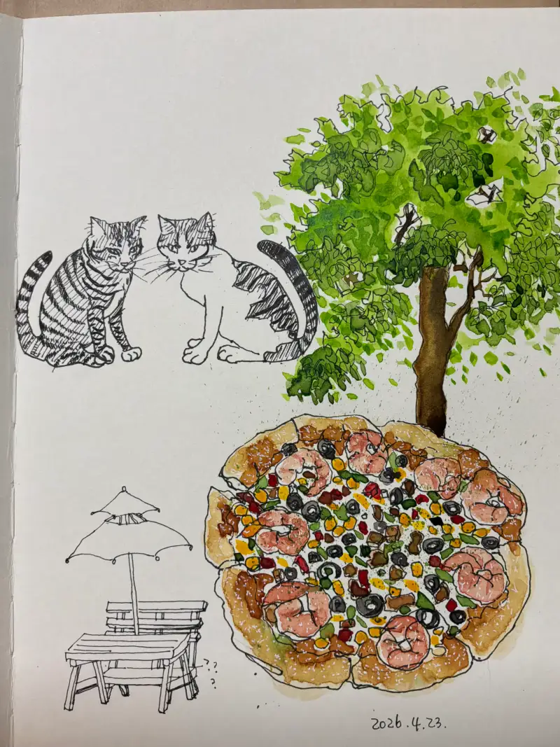 피자가 있는 까페를 그리다.