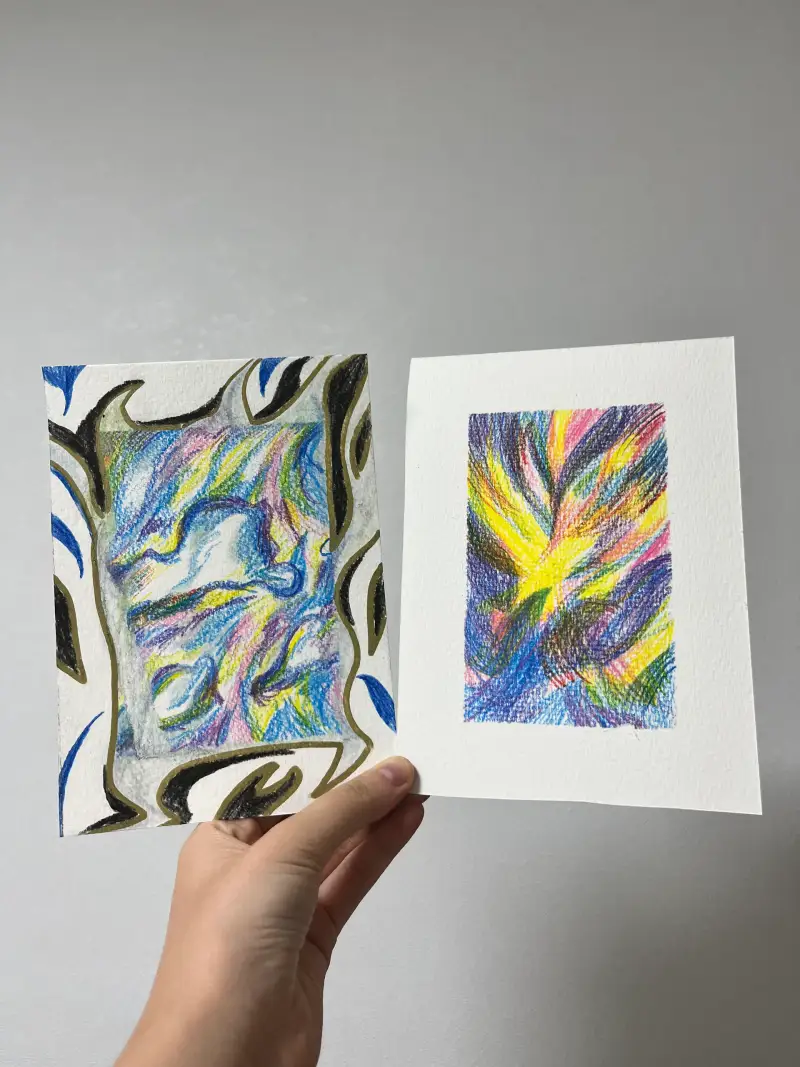하늘을 추상적인 모습으로 담고 수채화연필로 그려봤어요☺️