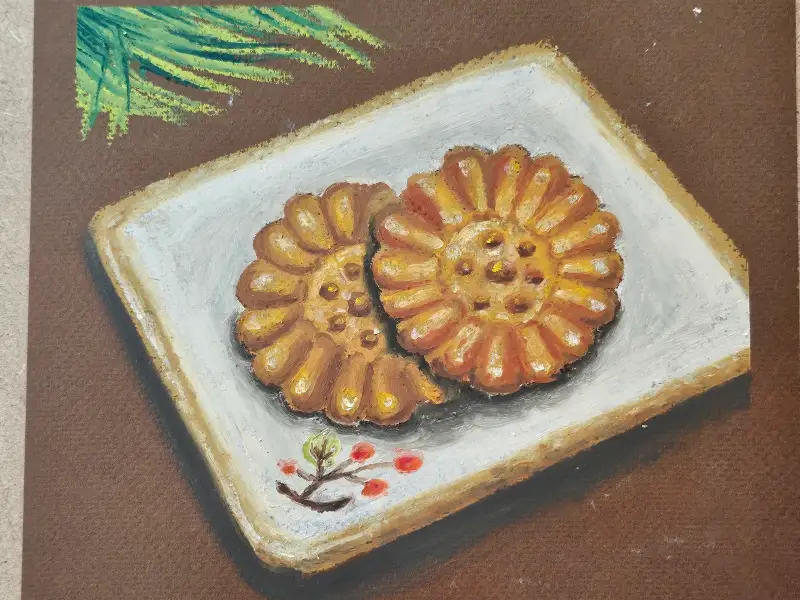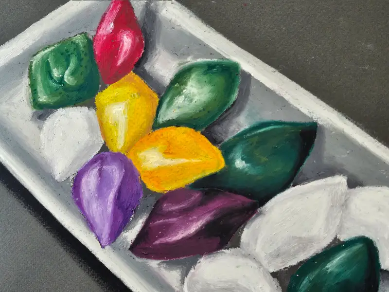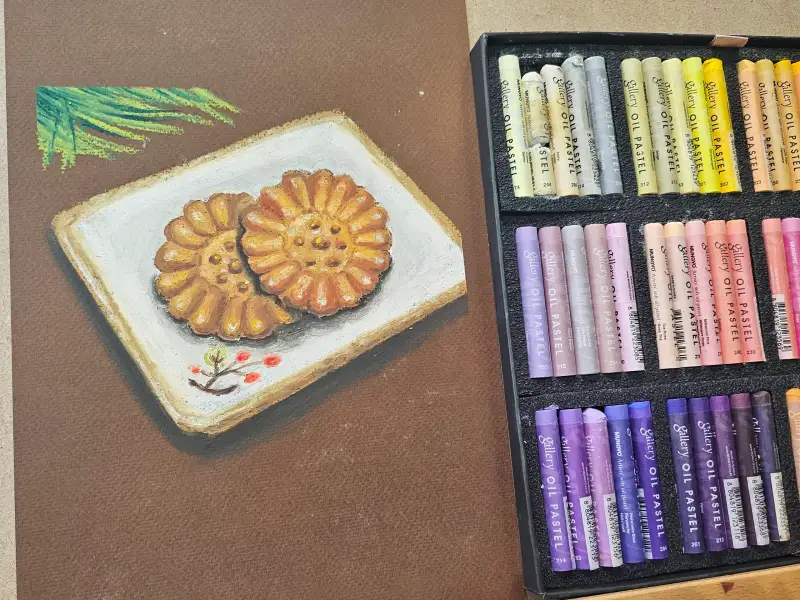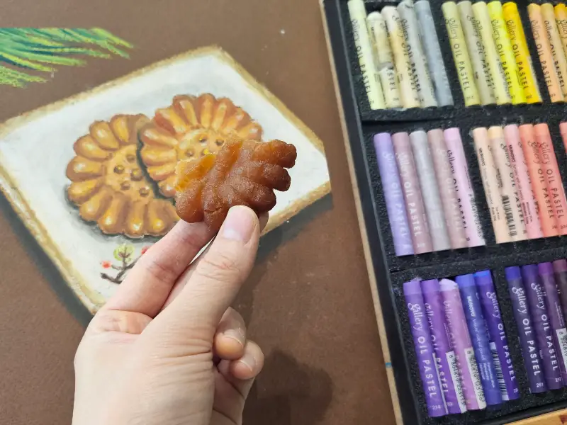 송편도 동일하게 오일파스텔로 그렸어요!
