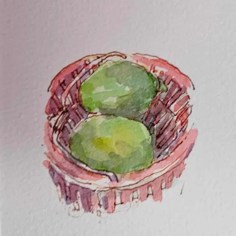 여행중이라 미루고 있다가 식사를위해 간 식당에서 호박이 담긴 바구니의 호박을 그려봄