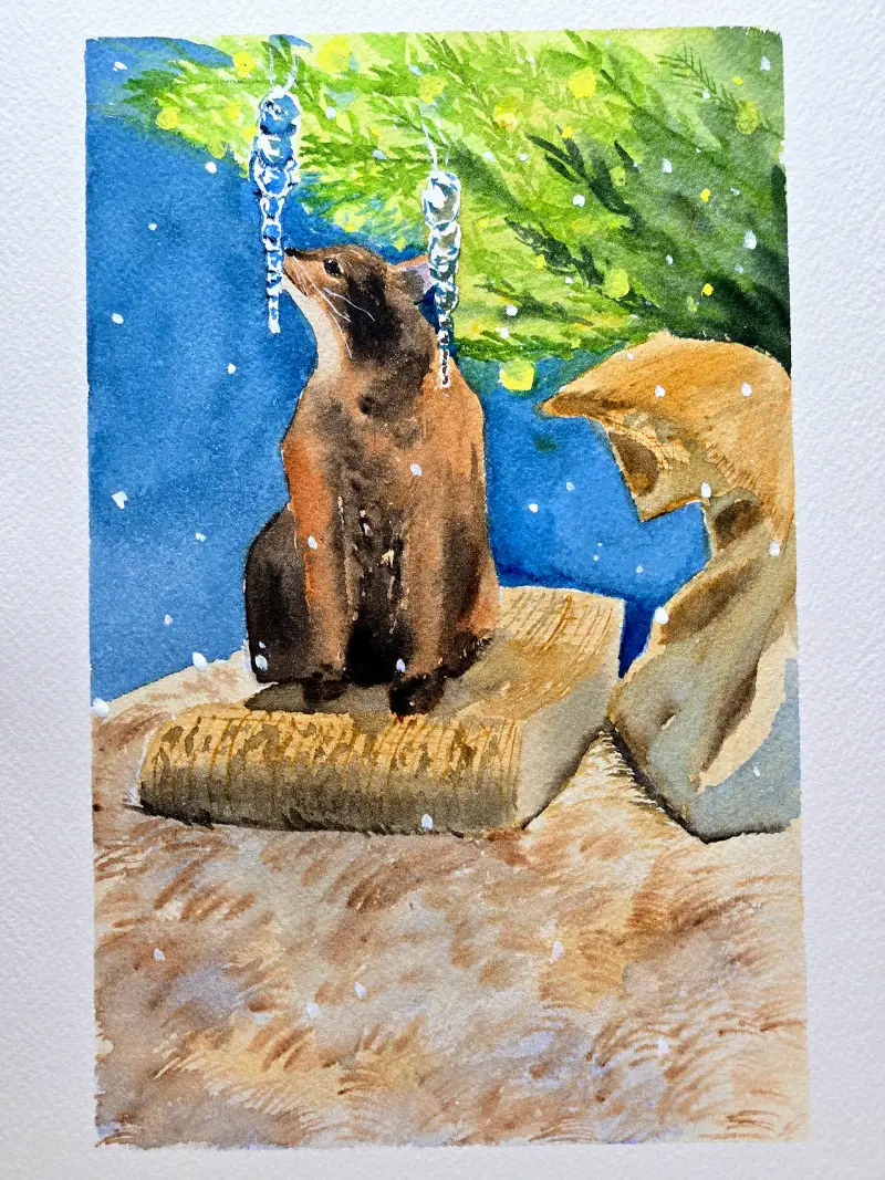 그림엔 저희집 냥이와 집 트리에 달린 고드름 오너먼트입니다~!