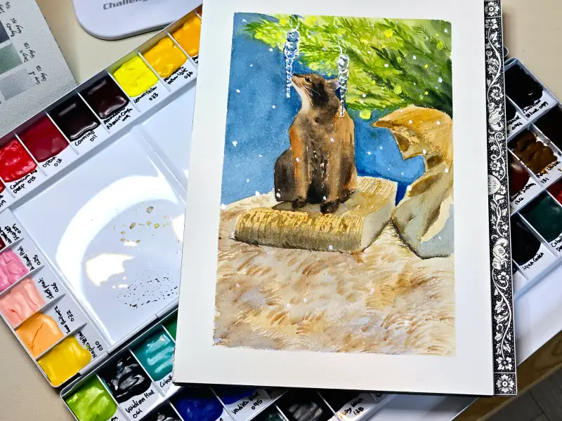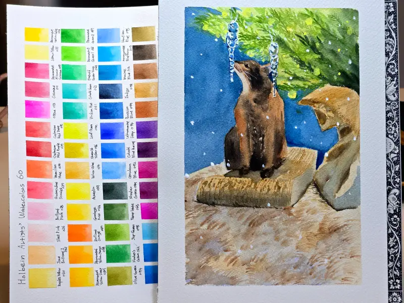 아래는 제가 12월 초? 11월말? 에 이합장지에 동양화물감 알파뉴채향으로 그린 오너먼트인데 같이 올려봅니다~
