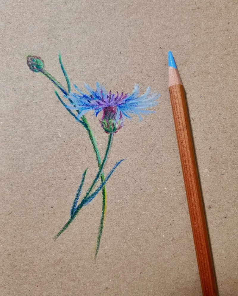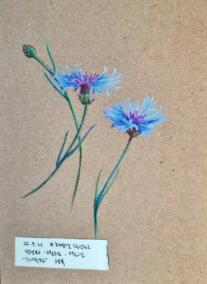 탄생화 수레국화를 프리즈마 색연필로 그려보았어요~ 꽃말이 '행복' 이라고 해요.