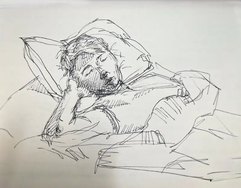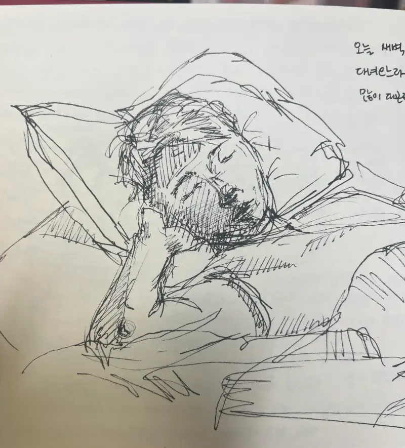 (그래서 곤히 잘자고있던 저의 짝꿍의 모습을 펜으로 슥삭 그려보았어요.)