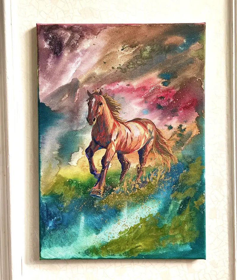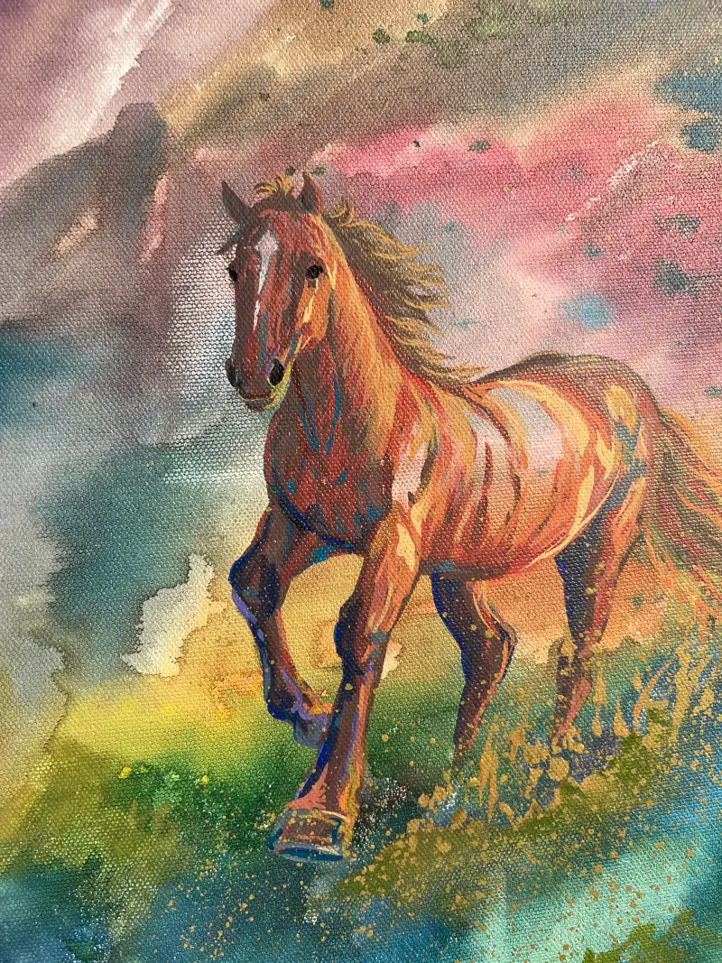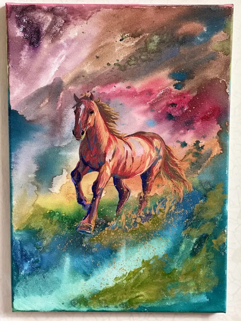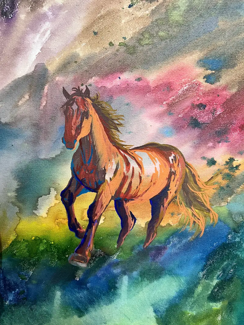 핀터레스트에서 참고한 붉은말과 어울리게 색감을 칠해보았어요 ㅎㅎ 신비로운 느낌을 내고 싶었답니다 :)