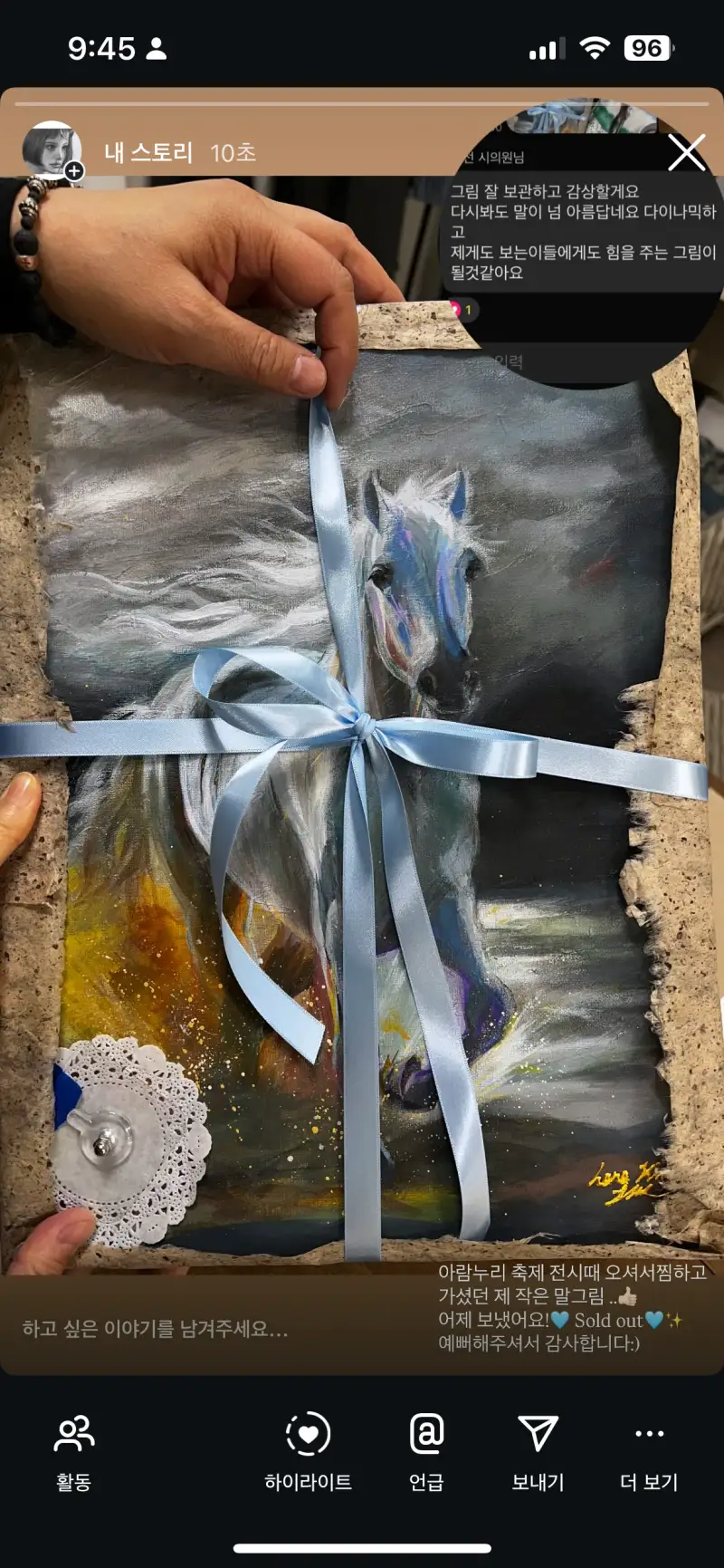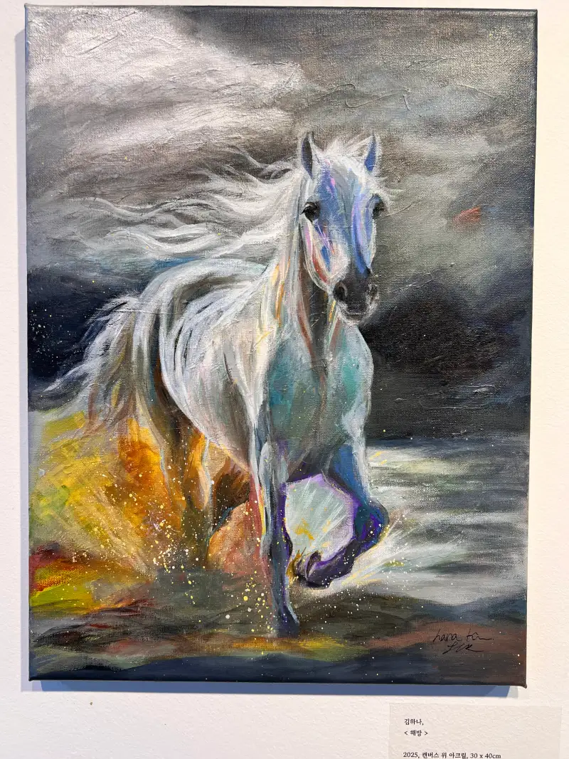 30호 유화로 그린 백마를 같이 내느라.. 작은 말그림은 안보일까봐 마지막까지 고민하다가 걸었었는데,, 제 그림을 아주 맘에 들어하시는 분께 보내니 너무 뿌듯하더라구요!