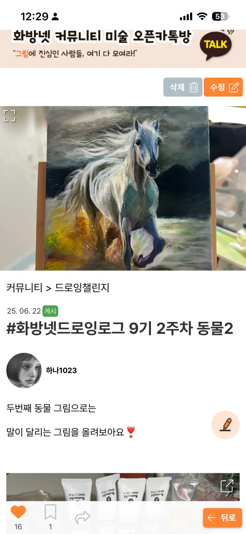 ...혹시 저번 드로잉로그 동물그리기 주제때 제가 그린 말그림 기억하시는 분 계실까요...?
