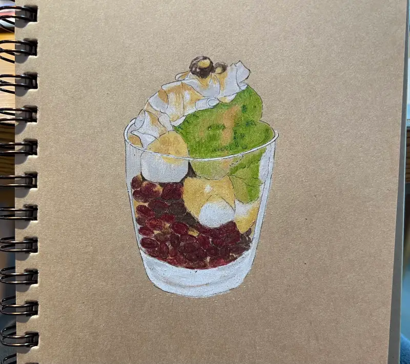 유리컵에 시원하게 담겨있는 빙수를 먹으며 더위를