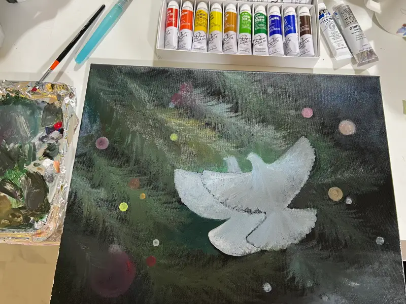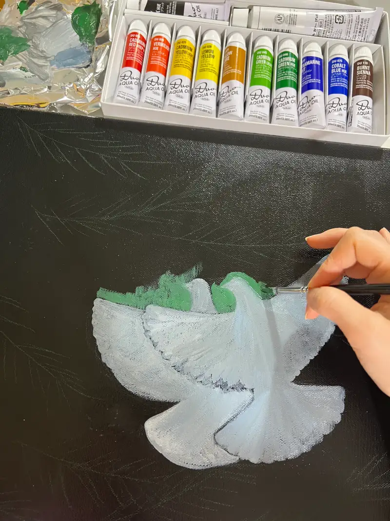 형태가 망가질까봐 먼저 비둘기를 그렸어요~