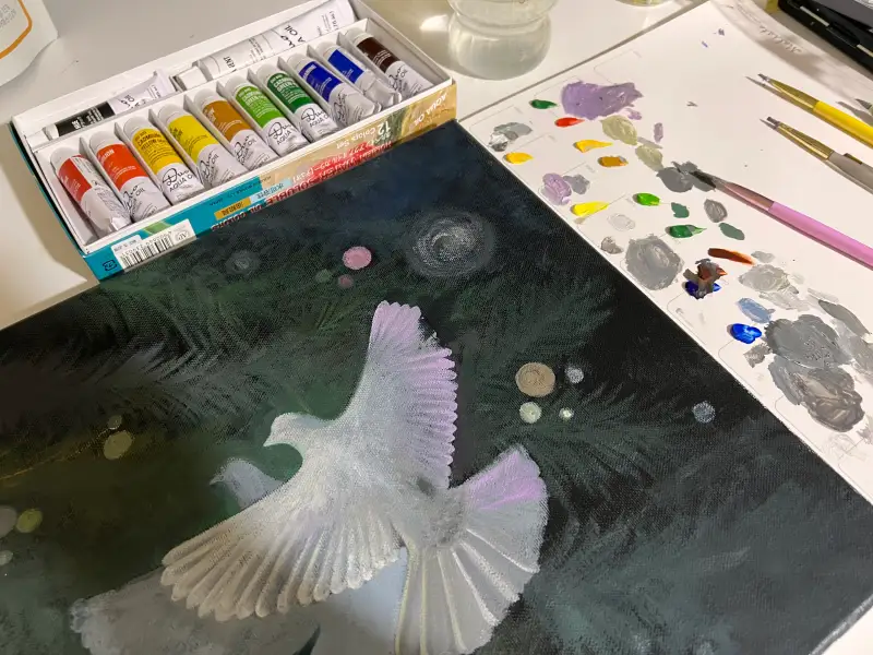 💘사용재료:💘 캔버스4호, 신한아크릴물감, 까렌다쉬 유성색연필, 홀베인 수성듀오 유화물감, 워터브러쉬, 화홍붓