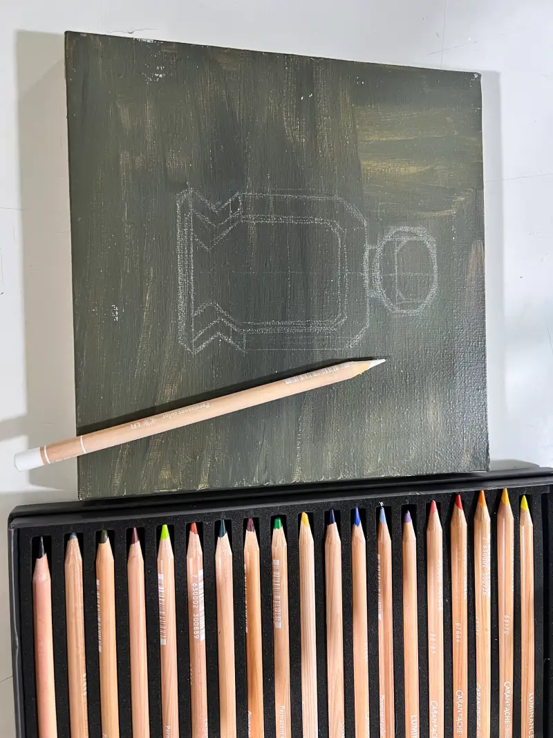 그위에 유성색연필로 스케치를 했습니다.