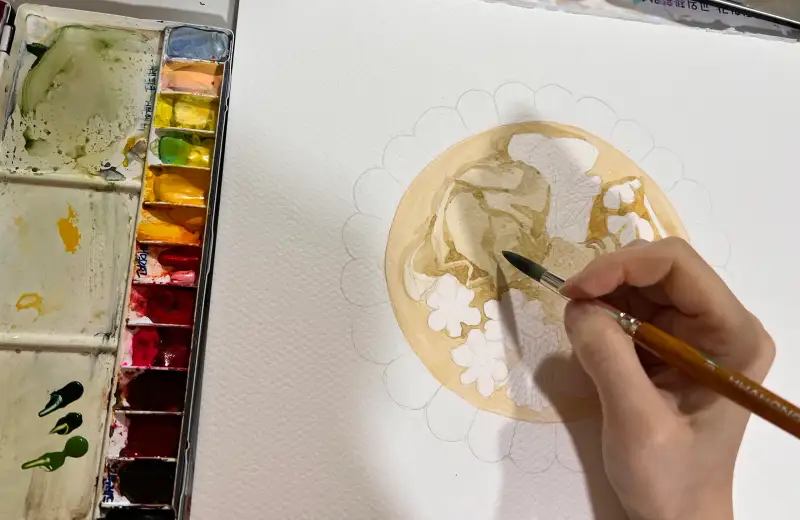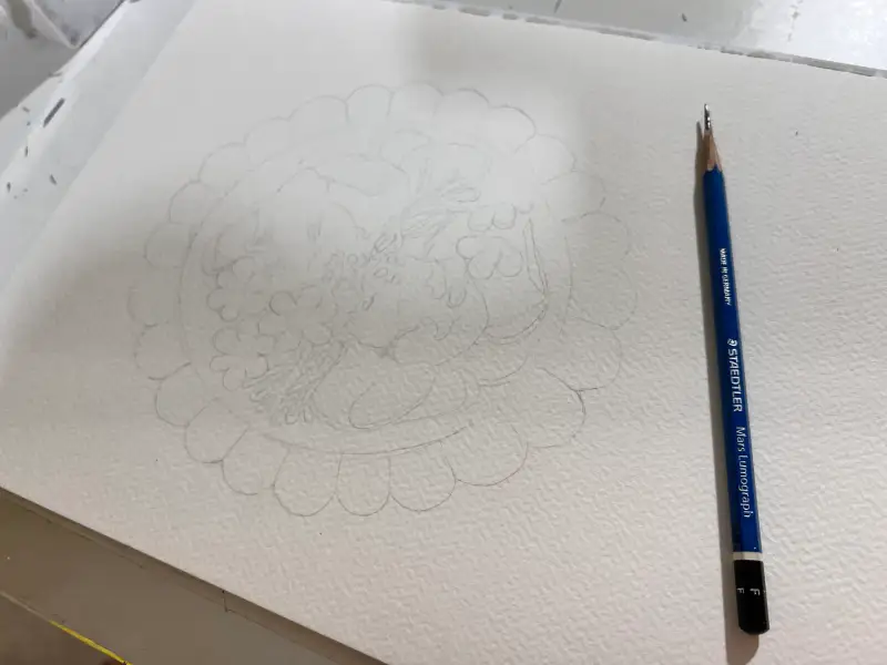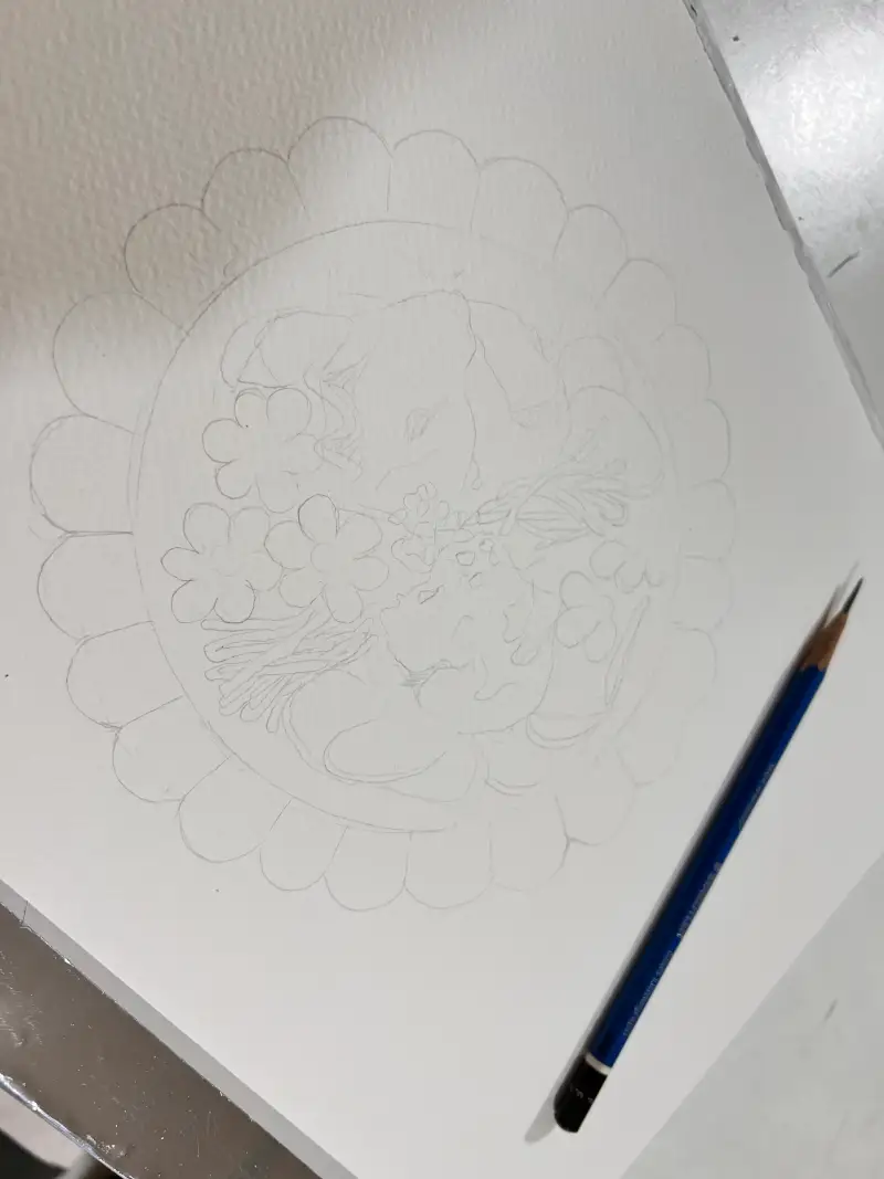 스케치를 한뒤 수채화로 밑색을 깔았어요