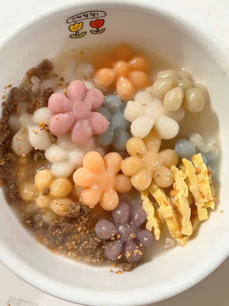 직접만든 만두와 꽃모양 떡을 넣어서 끓인 떡국이에요^^🌸